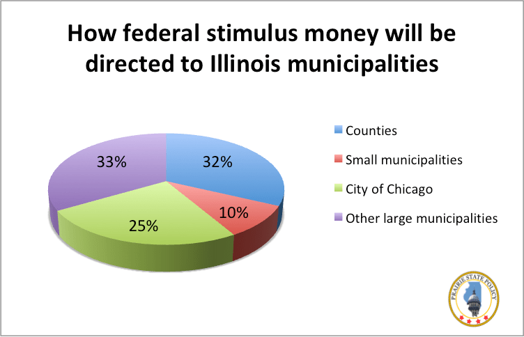 The city of Chicago will receive a separate amount of $1.8 billion. In effect, the net total being allocated to municipalities, including the city of Chicago, is roughly $7 billion. Figure 2 below illustrates how that total is divvied up as a percentage.