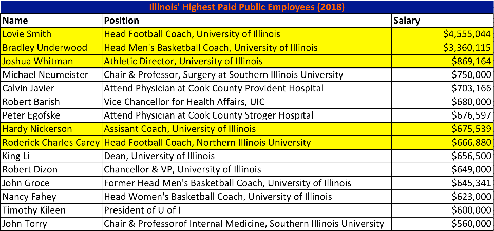 Let’s first just take a look at a list of Illinois’ highest paid employees. Here are how those numbers break down for the top 15: